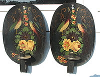 A Tole Tray with Cut Steel Wick Cutter or Snuffer |