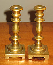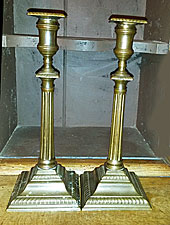 SOLD Pair of Brass Queen Anne Candlesticks |