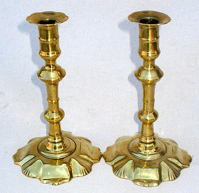 This lovely petal-base pair of candlesticks dates from the middle of the 18th century. They are in excellent condition and measure 7" tall.